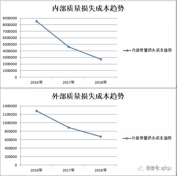 在2017年建立公司質(zhì)量成本統(tǒng)計核算系統(tǒng)以來,質(zhì)量損失事件及不合格產(chǎn)品造成的質(zhì)量損失成本數(shù)據(jù)進行了有效的收集、統(tǒng)計、分析、匯總,2018年,質(zhì)量損失成本管理的持續(xù)化,及對質(zhì)量損失成本分析數(shù)據(jù)的有效應(yīng)用,最終得到了豐厚的回報,根據(jù)質(zhì)量損失成本的排列圖分析,而確定的涂裝生銹、涂裝油點的改進;針對鈑金工藝的滾圈、擴口開裂的報廢損失的改進,最終使本公司的內(nèi)部質(zhì)量損失成本,由2016年的850萬下降到2018年的273萬;外部質(zhì)量損失成本由2016年的128萬,下降到2018年的67萬。